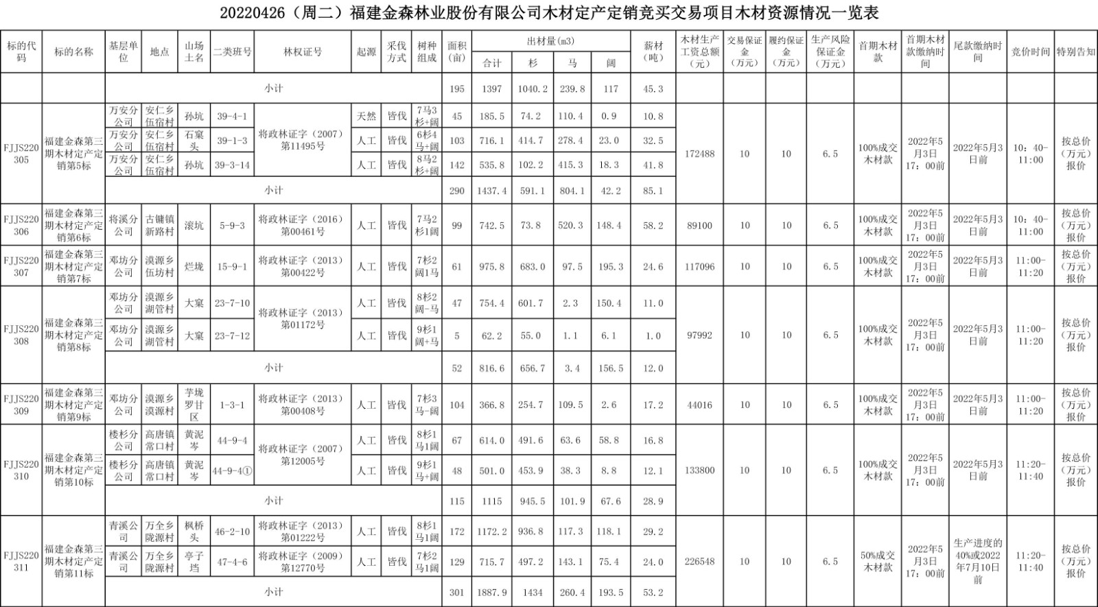 20220426(周二)福建金森林業股份有限公司木材定產定銷競買交易項目